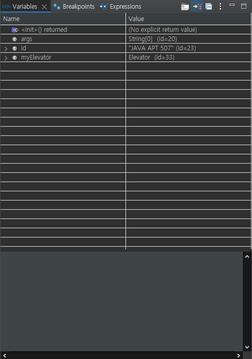 우측 창에 Step Over 시킨 변수들의 변화가 표시 된다.